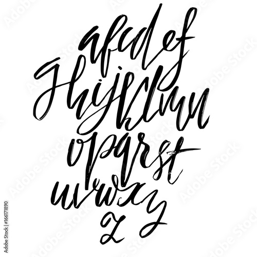Hand drawn elegant calligraphy font. Modern brush lettering. Grunge style alphabet. Vector illustration.