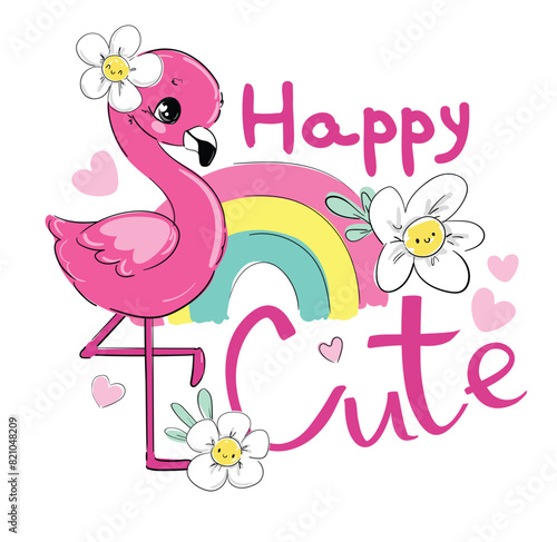 Hand Drawn Flamingo Vector Illustration, Summer Print Design, kids print on tshirt