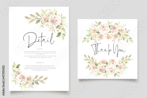 hand drawn floral roses wedding invitation card set