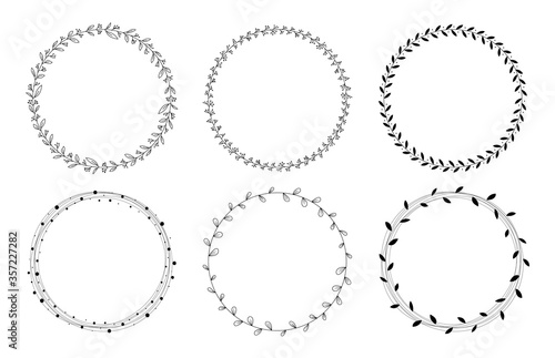 Hand drawn floral wreath and leaves. Decorative elements for design with Ink, vintage and doodle styles.