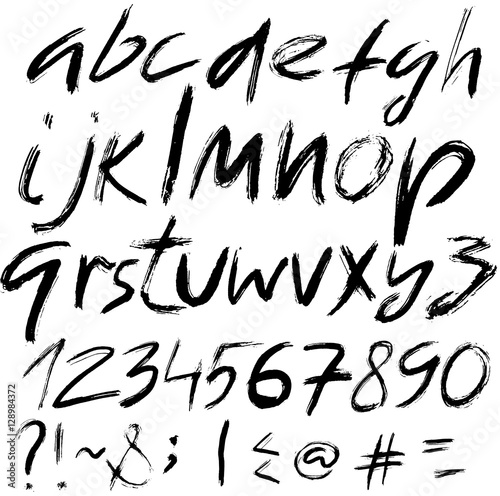 Hand drawn font made by dry brush strokes. Grunge style alphabet