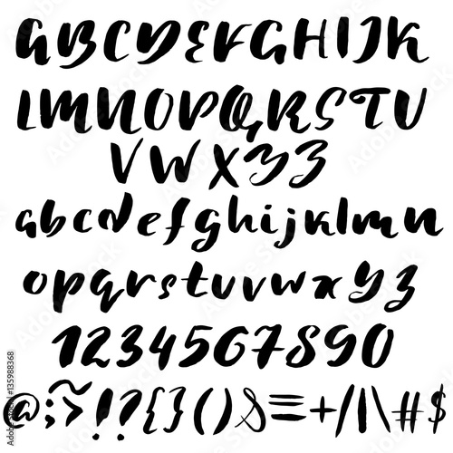 Hand drawn font made by dry brush strokes. Grunge style alphabet