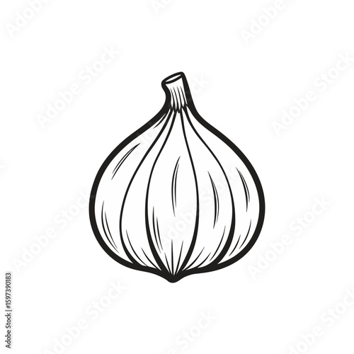 hand drawn garlic bulb with cloves detailed