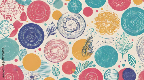 Hand drawn geometric seamless Round circular dot polka dot pattern. doodle. AI generated image, ai