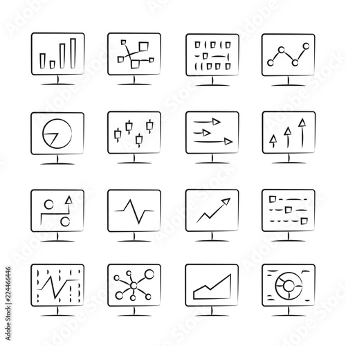 hand drawn graph and chart in computer icon set