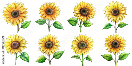Hand Drawn illustration set of sunflower . isolate on a white background. PNG