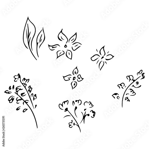 Hand Drawn Illustrations Of Abstract Peony Flower Isolated on White. Hand Drawn Sketch of a Flower. Line Art