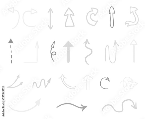 Hand drawn infographic elements on white. Abstract arrows. Line art. Set of different signs. Black and white illustration. Doodles for artworks