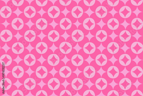 Hand drawn Japanese circle and star pattern background in pink, cute Japanese pattern wallpaper, seamless vector material/手描き風の七宝柄の背景、かわいい日本の和柄、ピンク色