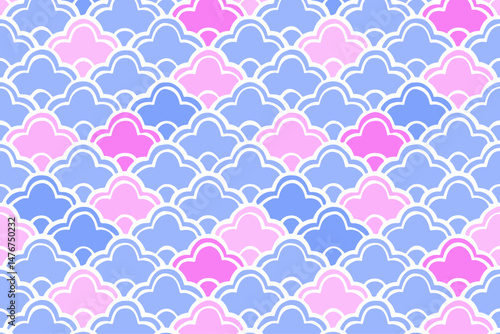Hand drawn Japanese colorful flowers pattern background, Cute Japanese pattern wallpaper, Seamless vector material/手描き風のカラフルな梅の花の青海波の背景、かわいい日本の和柄模様