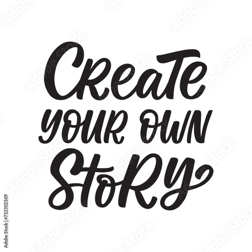 Hand drawn lettering card. The inscription: Create your own story. Perfect design for greeting cards, posters, T-shirts, banners, print invitations.