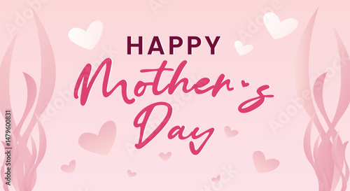 Hand drawn lettering Happy Mothers Day with hearts love background