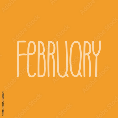 Hand drawn lettering phrase FEBRUARY. Month February for calendar. Ink brush lettering for invitation card, calendar, poster, flyer, advertising design.