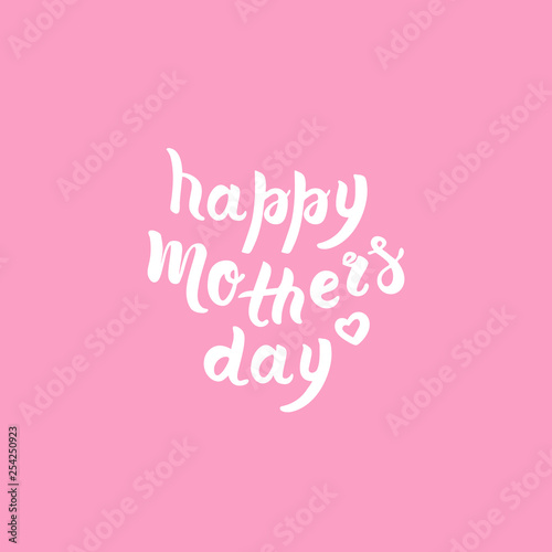 Hand drawn lettering white phrase happy mother's day with secorative elements and heart sign. Vector concept isolated on pink background. Brush calligrathy quote