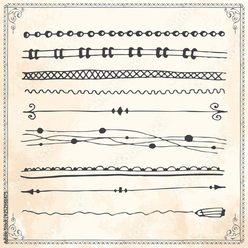 Hand drawn line border frame design elements set