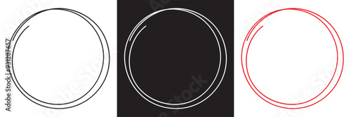 Hand drawn line circle sketch set. Doodle circles collection. Scribble round shape. Banner circle frames for text. isolated on white and black background. Vector illustration .EPS 10