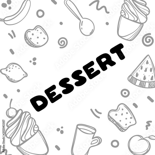 Hand drawn menu for cafe with food. Sketch concept illustration.