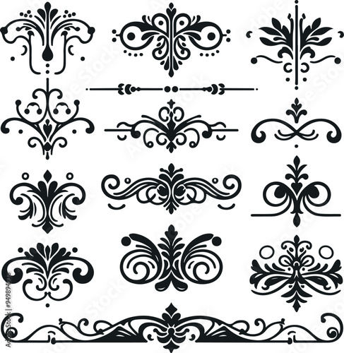 Hand drawn Ornamental Floral Dividers And Decorative Separators On Solid White Background