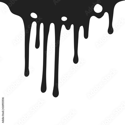 Hand drawn paint splatter background. Liquid drip. Melt ink drops. Vector isolated grunge stain.