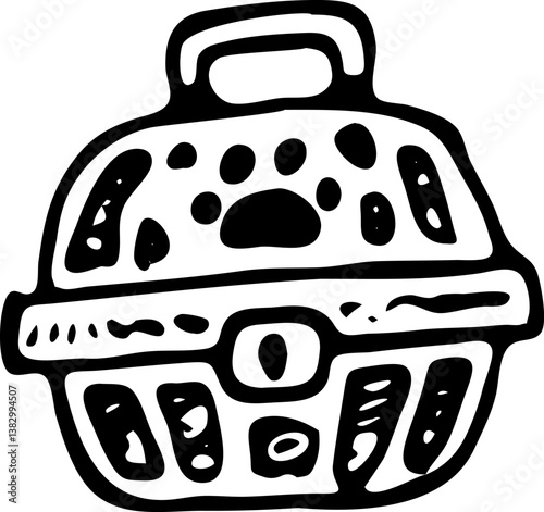 Hand drawn Pets transportation box doodle. Sketch pets icon. Decoration element. Isolated on white background. Vector illustration