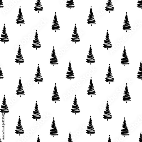 hand drawn pine trees forest winter christmas seamless pattern, vector illustration repeatable texture