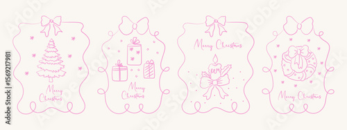 Hand drawn retro Merry Christmas cards. Festive winter greeting card design for celebration.