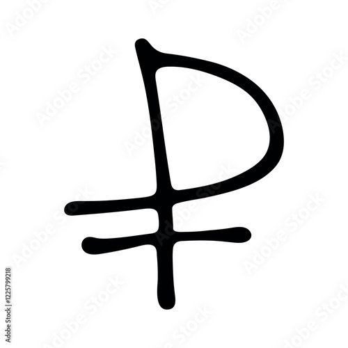 Hand drawn russian ruble currency symbol. Brush stroke doodle. Single element for design
