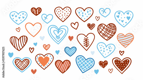 Hand Drawn Scribble Hearts - Valentine's Day Vector Icons Set