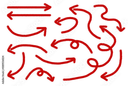 Hand drawn scribbles on white background. red Arrow, circle, stroke lines and squares drawn with black marker pen. Design element, clipping path.