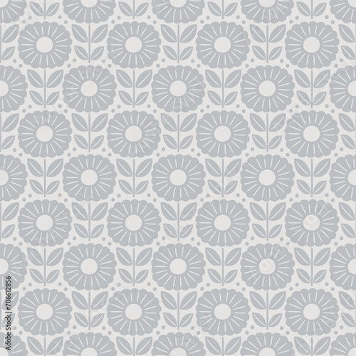 Hand drawn seamless pattern with decorative doodle flowers, repeat pattern with flowers and leaves
