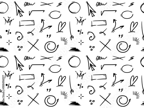 Hand drawn seamless pattern with underlines, speech bubbles, arrows, strokes. Sketch emphasis by pen, pencil or marker. Vector design background