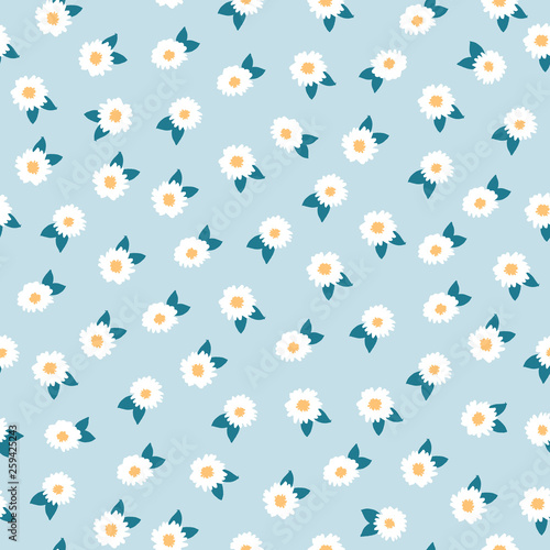 Hand drawn seamless pattern with white flowers. Wrapping, wall art design. Vector illustration.