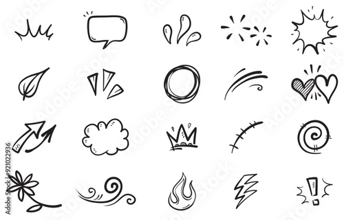 hand drawn set elements abstract arrows ribbons hearts stars crowns other elements hand drawn style