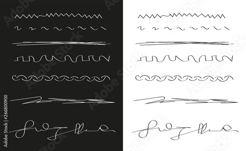 Hand drawn set of lines.Marker line divider, handmade pencil strokes brush and drawing dividers.Curve frame, decoration borders or floral ornament ink dividing isolated elements.Vector illustration.