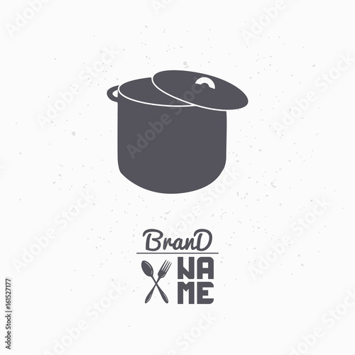 Hand drawn silhouette of stock pot. Restaurant logo template for craft food packaging, menu or brand identity