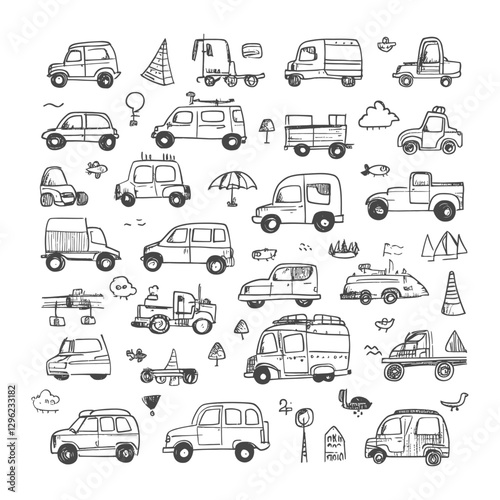 Hand Drawn Sketches Of Various Types Of Cars And Trucks
