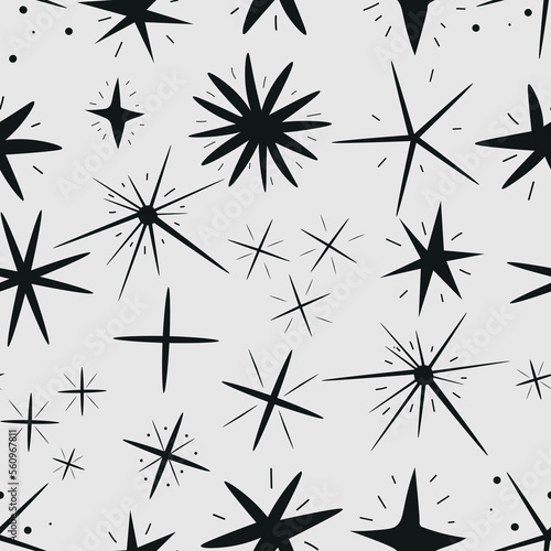 Hand drawn sparkling star. Retro abstract seamless pattern with hand drawn sparkle for celebration design. Geometric shape.
