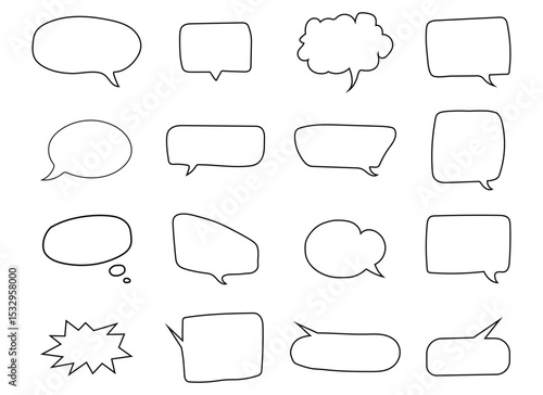 Hand drawn speech bubble vector set dialogue communication on transparent background