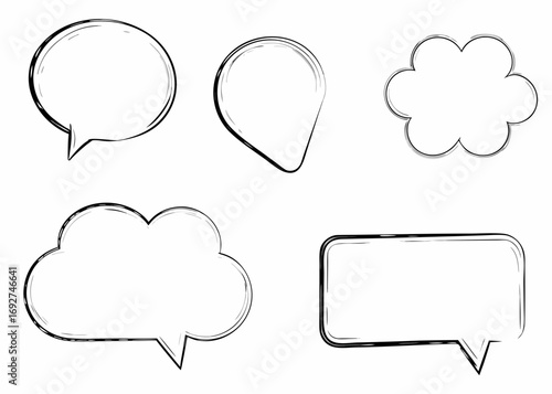 Hand drawn speech bubbles and thought clouds for creative communication design