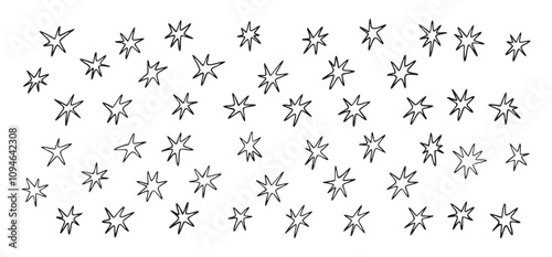 Hand drawn stars shapes with crayon and pencil textures set. Doodle flat star icons