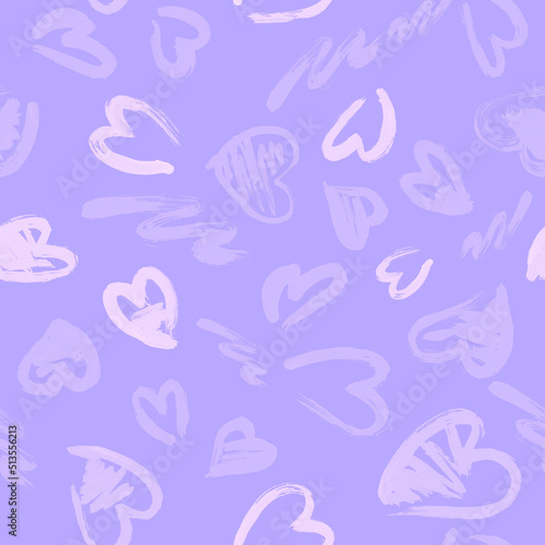 Hand drawn texture. Hearts, brush strokes, seamless pattern made with ink.