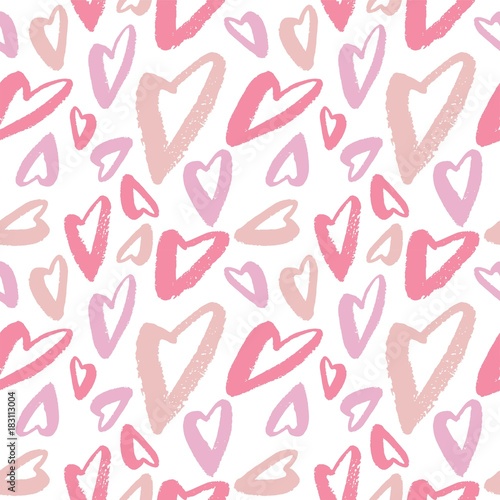 Hand drawn texture. Hearts, brush strokes, seamless pattern made with ink. Artistic fabric pattern. Valentine's day background