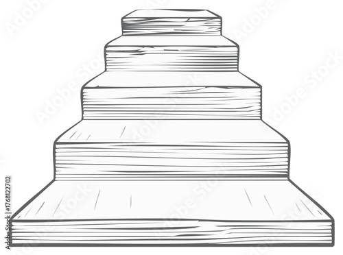 Hand Drawn Tiered Tower Structure of Layered Geometric Shapes in Minimalist Style and Monochrome Palette Design Element