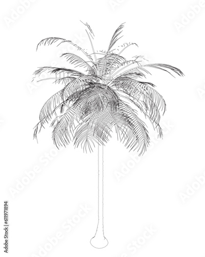 Hand drawn tropical palm tree. Vector outline of hawaii beach palm tree, fern and frond outline, botany flora tropical illustration. Contours Isolated on White Background. Vector illustration.