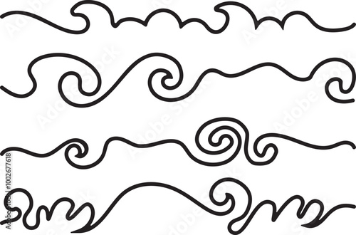 Hand drawn underline, squiggle curly wavy doodle. Brush line markers collection. Can be used as text dividers.