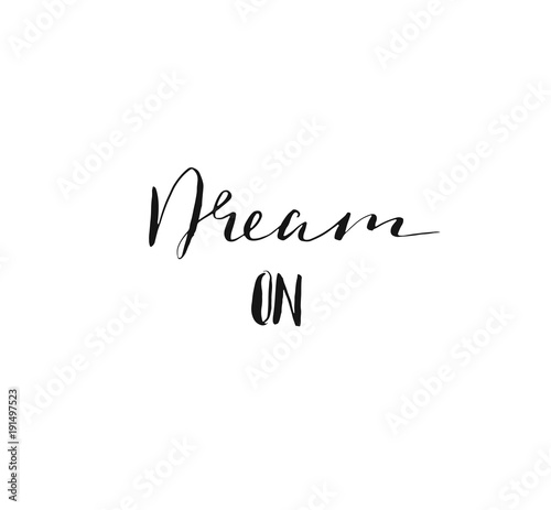 Hand drawn vector abstract handwritten calligraphy inspirational quote Dream ON. Lettering inspirational quote design or posters isolated on white background