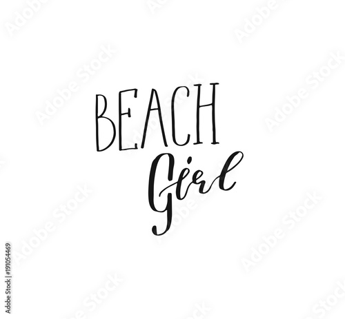 Hand drawn vector abstract ink shabby graphic handwritten calligraphy phase text Beach girl isolated on white background