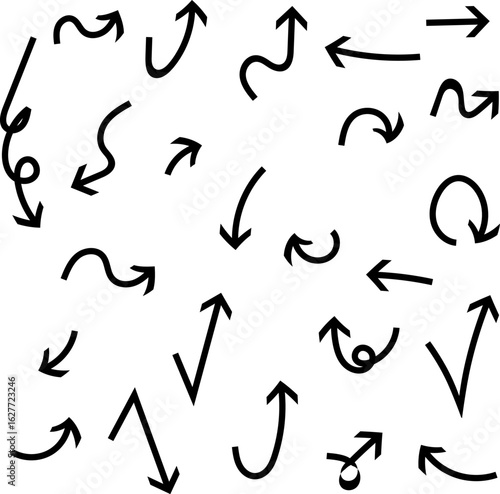Hand drawn vector arrows collection, alphabet, and numbers sketch doodle illustrations
