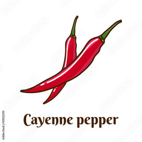 Hand drawn vector illustration of cayenne pepper or hot chilli pepper isolated on white background.