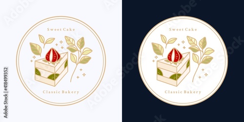 Hand drawn vintage cake, pastry, bakery logo, branding, and sticker elements